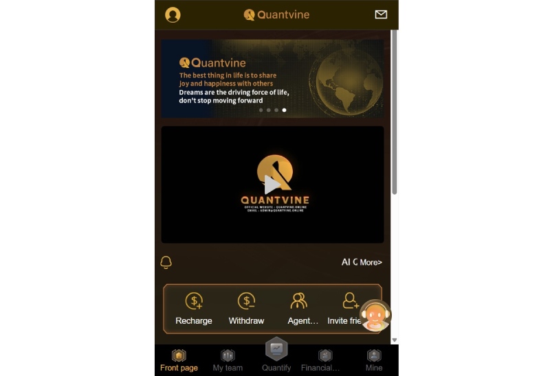Инвестиционная компания Quantvine позиционирует себя как уникальный проект, который предлагает участникам заработок на онлайн-сделках по покупке и продаже цифровой валюты. Представители проекта заявляют, что все процессы происходят на основе автоматизированной квантовой системы, которая не требует много времени и якобы не несет инвестиционных рисков.